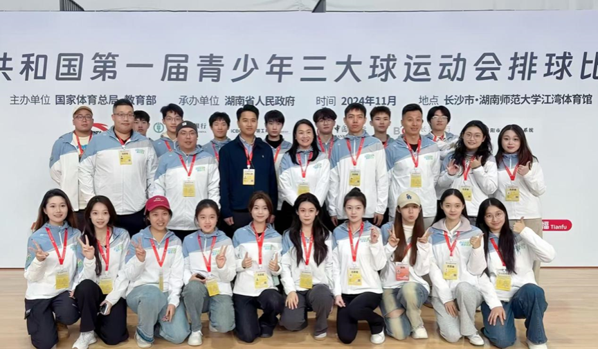 (通讯员 刘乐怡)11月28日,为期12天的中华人民共和国第一届青少年三大球运动会正式闭幕。本届运动会是我国首次专门针对青少年三大球运动项目设立的全国性体育赛事。我院播音与主持艺术系50名学子参与此次赛事的开幕式演出,22名学子参与赛事播报。学院党委副书记张小春,播音与主持艺术系主任颜湘君、教师柳亚鹏,24级辅导员冯泽桐全程参与指导。