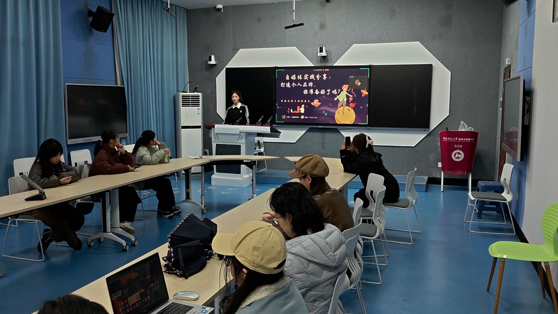 (通讯员 罗哲颖)为助力新传院学子深入了解自媒体领域,掌握打造个人品牌的方法与技巧,3月29日下午,新传院团委青创部举办了以“自媒体实践分享:打造个人品牌,你准备好了吗”为主题的精勤讲堂讲座。此次讲座由23级播主班的宋嘉懿担任主讲人,向同学们分享她在自媒体实践中的丰富经验。