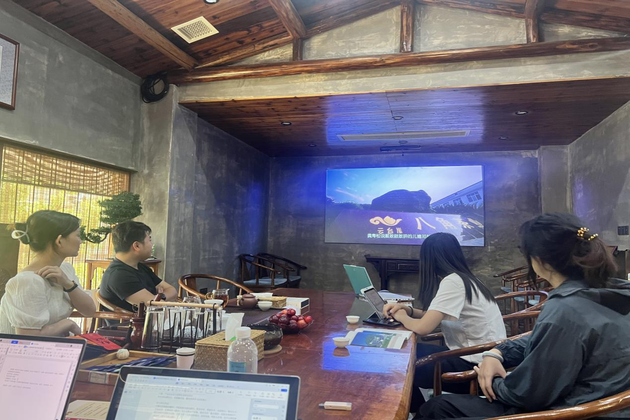 实践团成员与龚意成深入探讨八角茶业的发展之路。从一代老茶人龚寿松的开创,到二代女茶人邓超芝的坚守,再到三代新茶人龚意成的担当,“传承就是最好的创新”,龚家三代茶人的坚持,彰显了民间企业在乡村振兴领域的强大潜力。随后,实践团成员与龚意成对市场调研和品牌营销进行了深入探讨,交谈过程中,实践团成员围绕云台崖的创新精准扶贫方式展开重点研究,龚意成表示公司采用“公司+基地+农户”模式助力精准扶贫,累计覆盖了9970余茶农并对分装进行减法,做到简单化、时尚化,让传统原叶茶走向百姓家。 为更直观地展现云台崖的产品质量优势,实践团成员跟随龚意成的脚步参观了企业的茶叶加工工厂。通过观摩现代化加工设备的运作流程,实践团成员成功找到了现代科技与企业文化、黑茶文化的紧密融合,茶产业转型升级的生动样本。