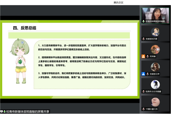 (通讯员 吴英楠 王绅)4月1日中午,我院举办线上2021-2022年度学生干部述职大会。党委副书记张小春,院团委书记陈安琪出席会议。