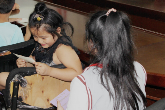 图为孩子们兴奋地收到成员们精心制作的游戏卡片。葛嘉竹摄