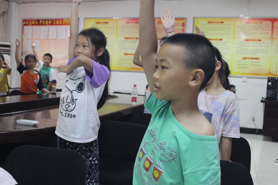 同学们到达教室后,老师们组织入座,开始上课。教学老师以小朋友熟知的游戏《王者荣耀》为切入点,引入配音在生活中的体现,使孩子了解配音。播放《猫和老鼠》方言版使孩子们深刻认识到普通话配音的重要性。又以东京奥运会解说为例介绍配音在电视节目中的应用和功能。为了更好演示配音工作,团队成员还采用音节爬升、鼻腔发音、靠后发音、嘟嘴发音来改变音色的趣味发声方法。除上课内容外,团队老师还带领孩子们进行“唱反调”游戏互动,活跃课堂气氛。课堂最后孩子们进行《小羊与大灰狼》配音表演实践,伴随欢快的铃声,此次课堂落下帷幕。