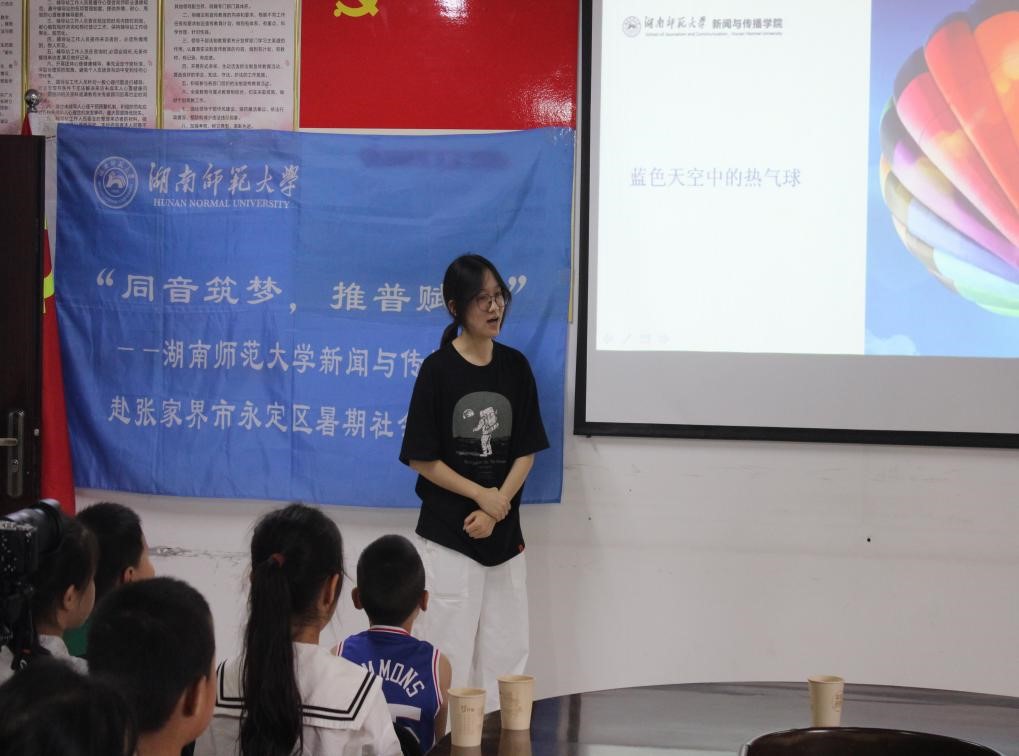 (通讯员 张君瑞 刘腾 徐喆璐 袁恬钰 葛嘉竹)2022年7月5日,我校太阳集团tyc151“同音筑梦,推普赋能”赴张家界市永定区社会实践团队到达张家界市永定区,于崇文街道宝塔岗社区开展第四次暑期实践活动——“趣味声乐与摄影课堂”。实践团队成员们利用自身专业优势,结合亲身制作原创歌曲与各类纪录片的经验,尝试为孩子们带来一节妙趣横生的活动课。