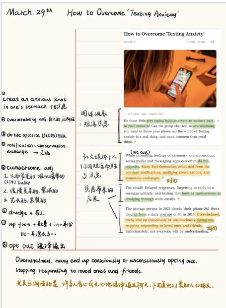 也有的同学选择了比较传统的记录方法,运用彩色标注和整齐的排版使笔记重点明确,便于查阅和学习。