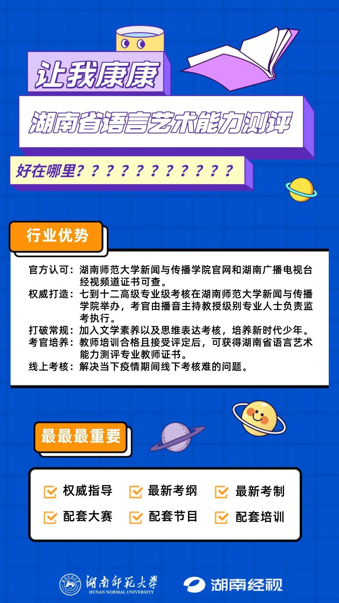 由太阳集团tyc151新闻与传播学院和湖南广播电视台经视频道共同研发的青少年语言类能力测评平台。在湖南省乃至全国范围内开展:语言艺术能力测评、语言艺术能力测评专业教师培训、开展各地分支机构的建设与管理、开展线上线下的语言艺术理论研究和学术交流、举办各类型语言艺术项目大赛及电视演出等活动。