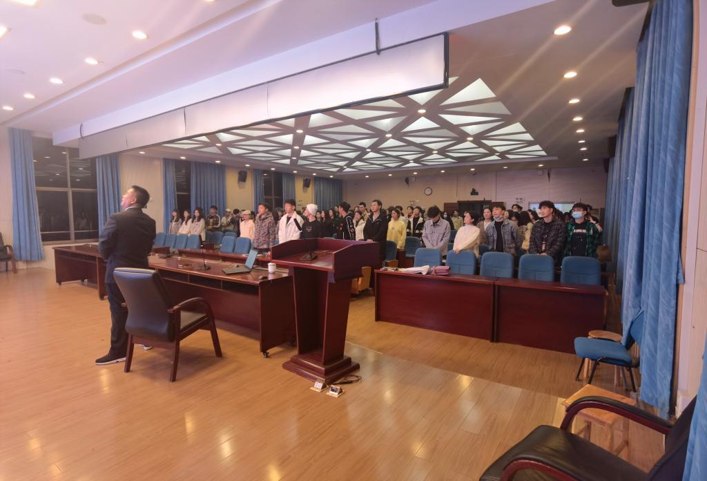大会最后,高广安老师带动全体同学起立,共同诵读《游子吟》,大家将课上的知识现学现用,在欢笑与掌声中结束了讲座。高广安老师鼓励同学们苦练专业,学无止境,永远饱含真情地做一个好创作者。