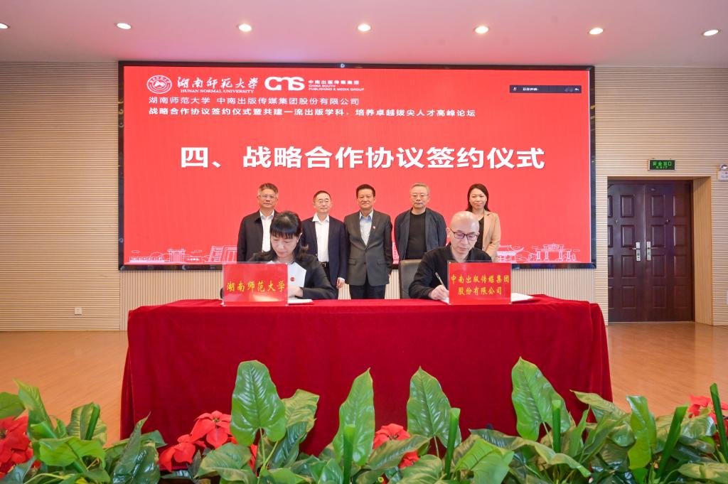 据悉,我校编辑出版学专业于2000年在湖南省高校中最早开设,2002年,编辑出版学作为传播学硕士点中的一个专业方向,开始招收硕士研究生。2010年,成为全国第一批获得授权的14个出版专硕点之一。2018年和2019年,获得全省首个编辑出版学方向博士点和博士后流动站。2021年,获批国家级一流本科专业建设点。目前,编辑出版学专业已形成从本科到硕士、博士、博士后的多层次人才培养体系,为学界和业界培养了一大批优秀人才,在全国拥有较大影响力和较高美誉度。此次战略合作和高峰论坛的举办,将进一步推动我院出版学科的建设和发展。