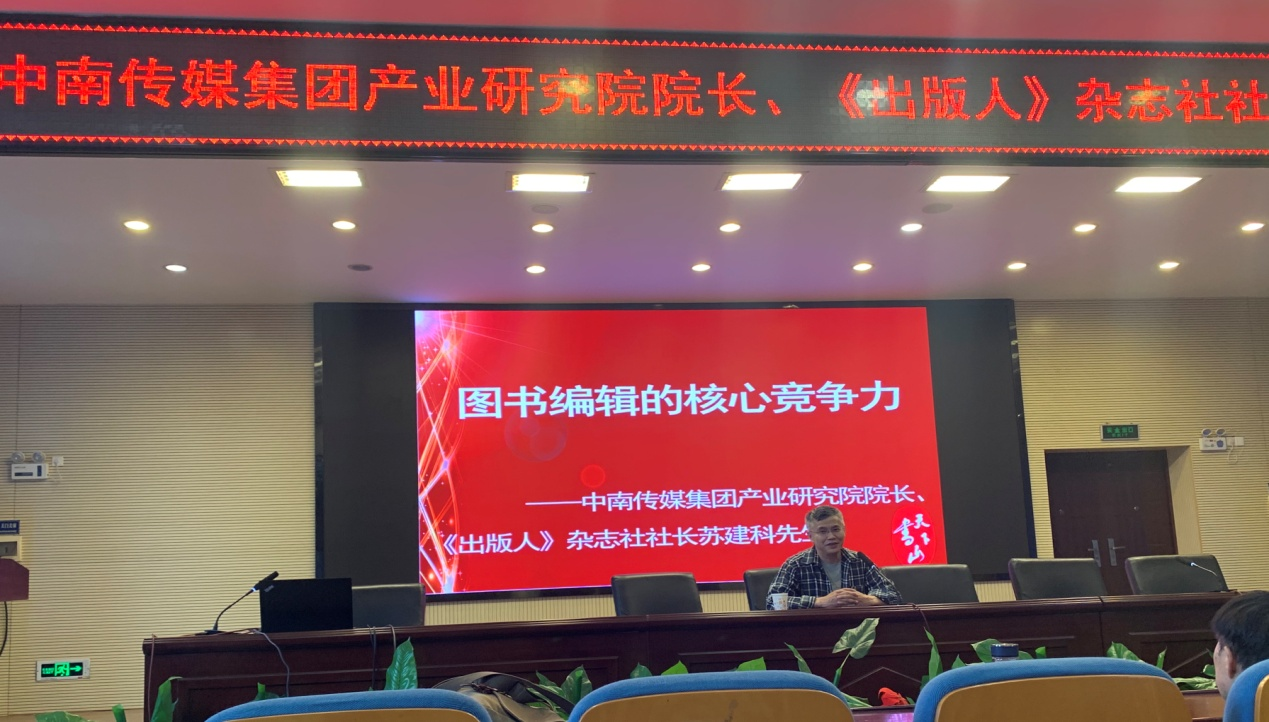 (通讯员 班瑶) 5月11日下午,中南传媒集团产业研究院院长、《出版人》杂志社社长苏建科在新闻传播学院书山论坛作主题为“图书编辑的核心竞争力”的学术讲座,讲座由副院长周国清主持。