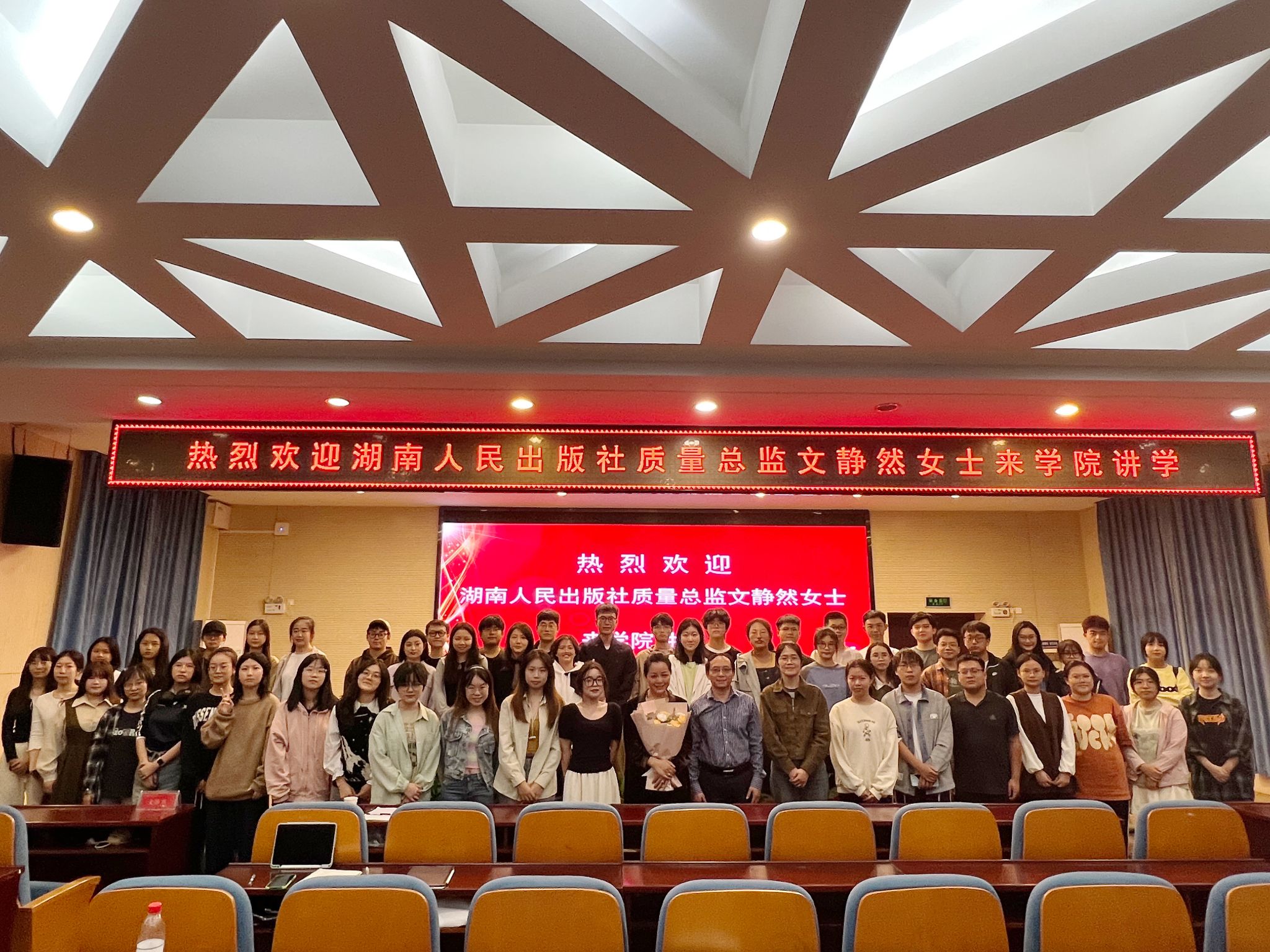 王海刚对文静然女士的到来表示热烈地欢迎,他表示我院编辑出版学专业作为国家级一流本科专业建设点,向来强调采取理论与实践相结合的教学方式,目前取得的成绩离不开业界给予的大力支持。他鼓励同学们树立对编辑出版工作的热爱之心和学习之心,不断提升自身素养和能力。