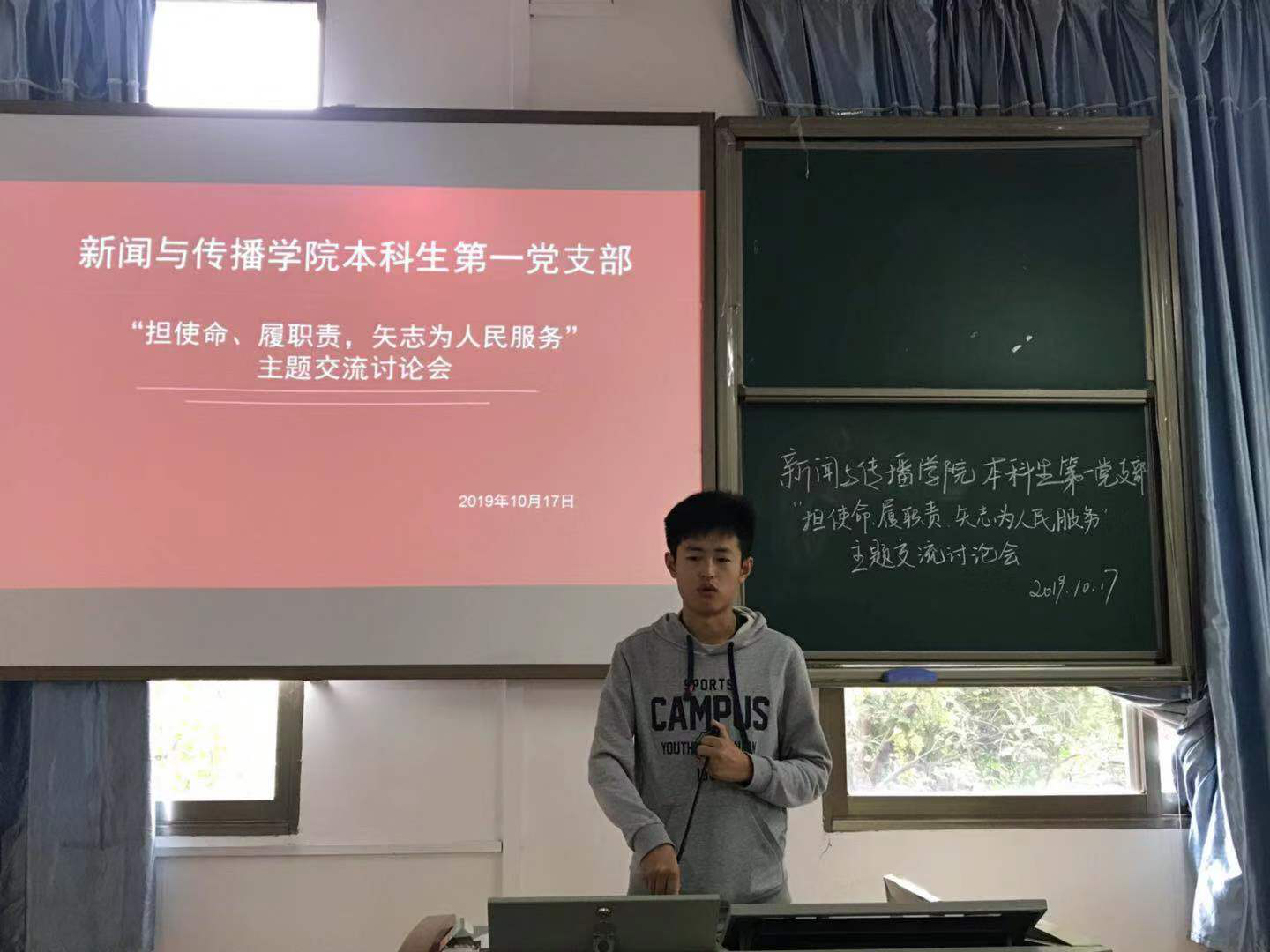 (通讯员:孙啸辰)2019年10月25日太阳集团tyc151本科生第一党支部在学院315教室召开“担使命,履职责,矢志为人民服务”主题讨论大会。第一党支部成员参加了此次主题讨论大会,会议由支部组织委员刘玥主持。