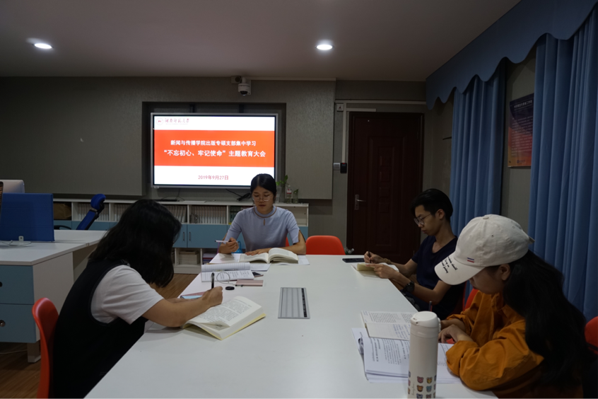会议由出版支部支书叶翠主持,参会人员有刘爱萍、张娜娜、张如意、刘世桢。会议伊始,主持人叶翠强调会议纪律并说明了此次主题学习的重要性,随后支部成员集体学习了“不忘初心、牢记使命”的相关知识。支部成员与会过程中认真学习并做好相关学习记录,在会议最后,支部成员内举行了自由发言,如围绕着“推动社会主义文化繁荣兴盛”与自身所处编辑出版学科的联系,积极阐述了作为老师或学生对于文化传播与积累的理解。