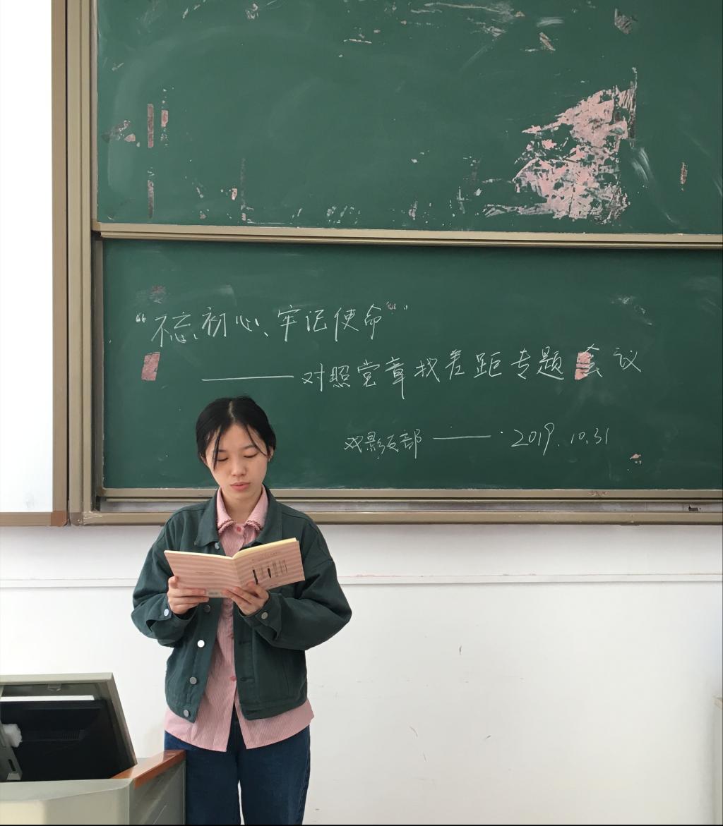 10月31日中午,按照我校“不忘初心、牢记使命”主题教育工作安排,戏剧与影视学学硕支部召开了对照党章党规找差距专题会议。此次会议由支部副书记唐瑾主持,支部成员逐一对照检查。