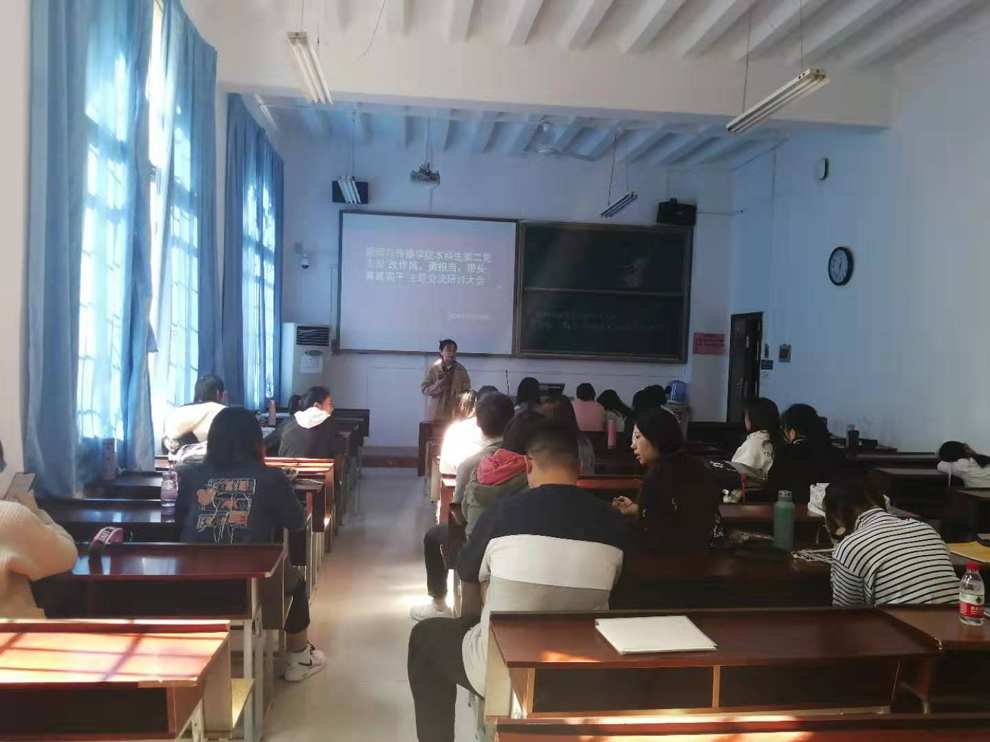 此次交流研讨会按照党中央“不忘初心、牢记使命”主题教育工作部署,就如何改作风、勇担当,带头真抓实干的问题展开探讨。支部成员围绕主题展开热烈的交流讨论,之后依次上台做主题发言,阐述自己对如何改作风,承担起相应时代责任的问题的观点。支部成员们表示,十八大以来,我们的党的发展历史进入新时代,作为党员要敢于直面问题、解决问题,做到真抓实干,而不是仅仅停留在口头上。