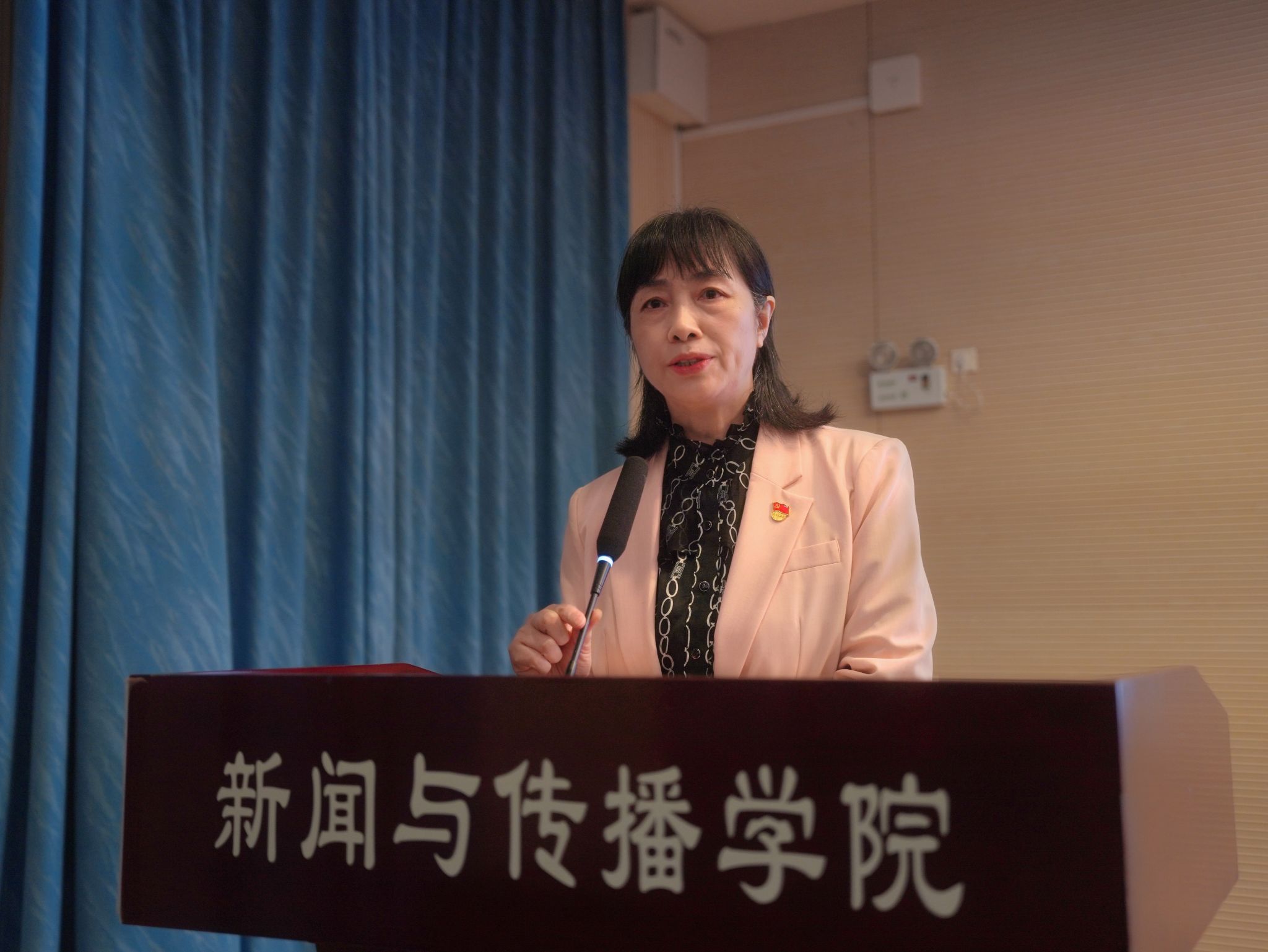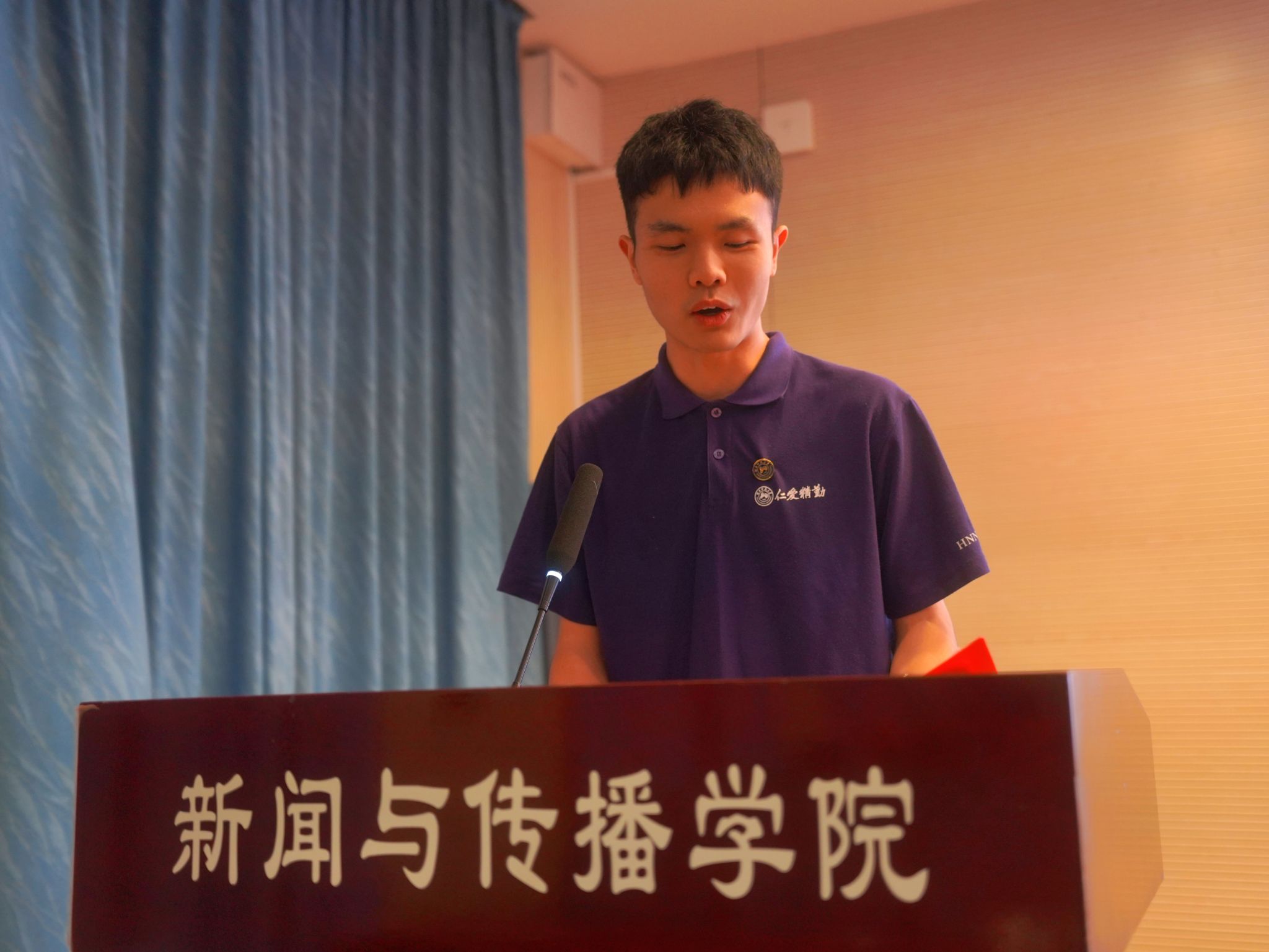 2022级网络与新媒体专业本科生吴世辉作为入党积极分子代表上台发言。他分享了南海舰队军旅中、抗疫志愿者岗位上与中国共产党的故事,以所见、所思、所感阐释了他对党的认识。他倡议所有入党积极分子保持“提交入党申请书时的纯粹”,坚定守护初心信仰。